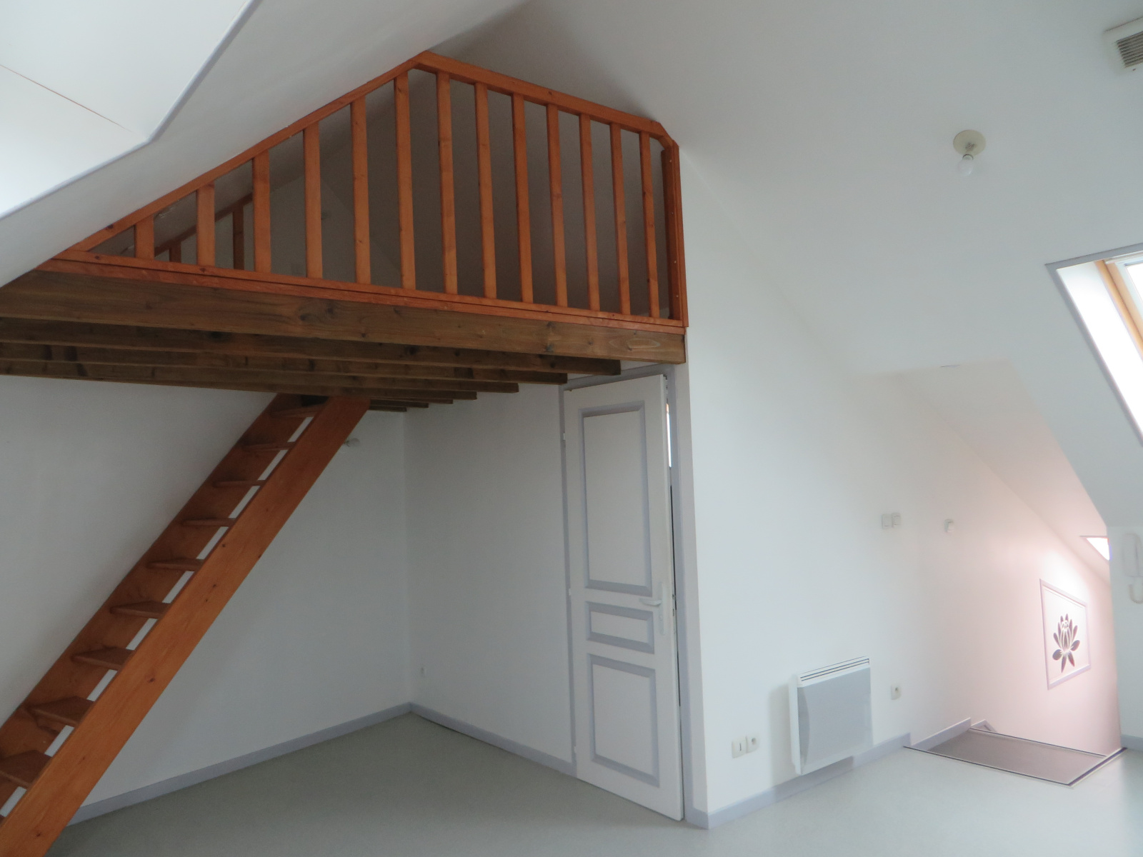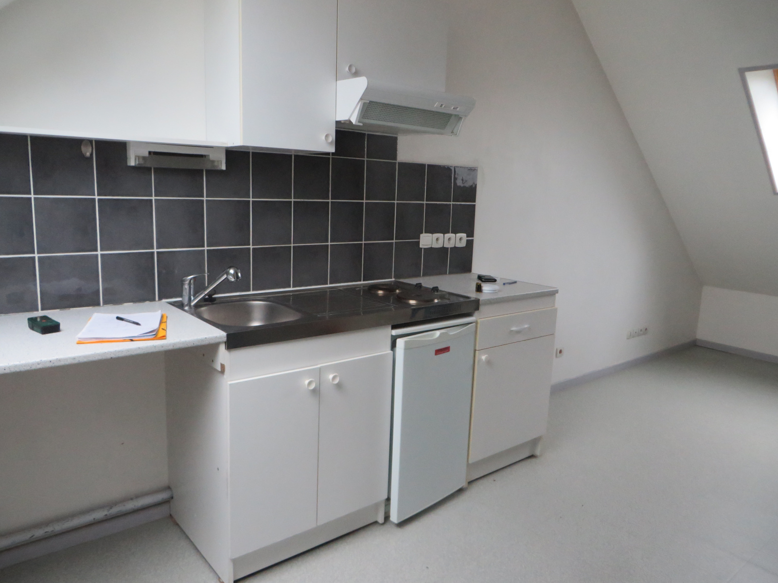 Amiens (80090)Studio situé au 2ème étage en très bon état, comprenant : 1 pièce de vie avec coin cuisine semi-équipée (plaque cuisson, hotte, frigo) , 1 salle d'eau avec douche, lavabo et WC (+placards) et un coin nuit en mezzanine