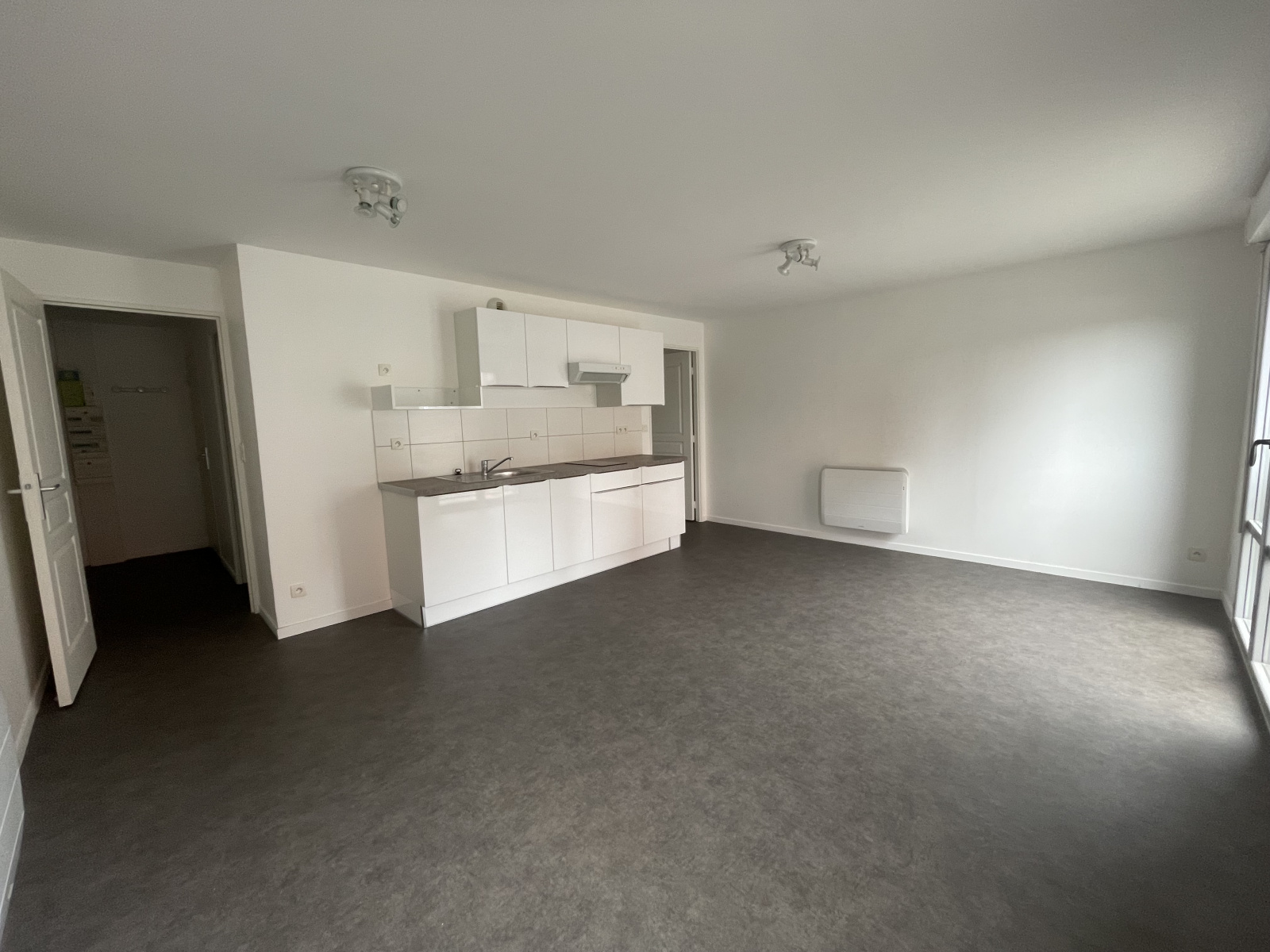 hall d'entrée, salle de séjour avec cuisine aménagée, 1 chambre, salle d'eau, WC