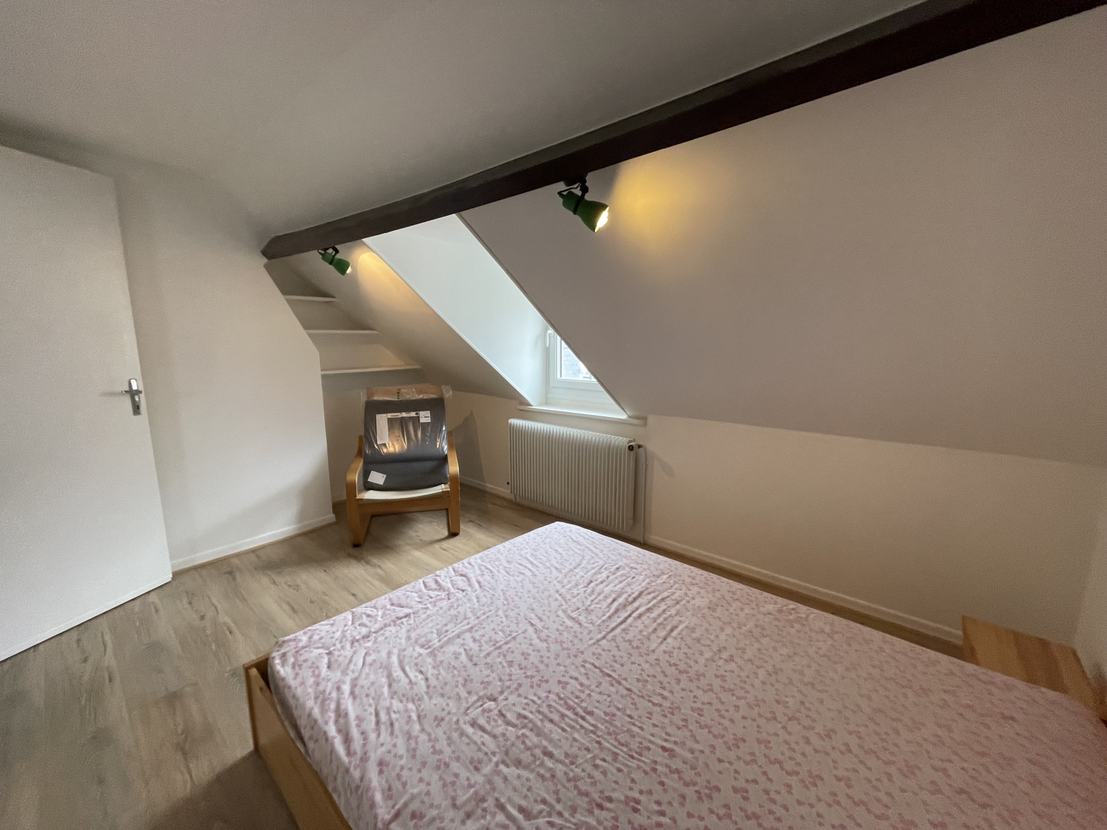 au 2nd étage : palier dessevant 1 grande chambre mansardée et 1 bureau