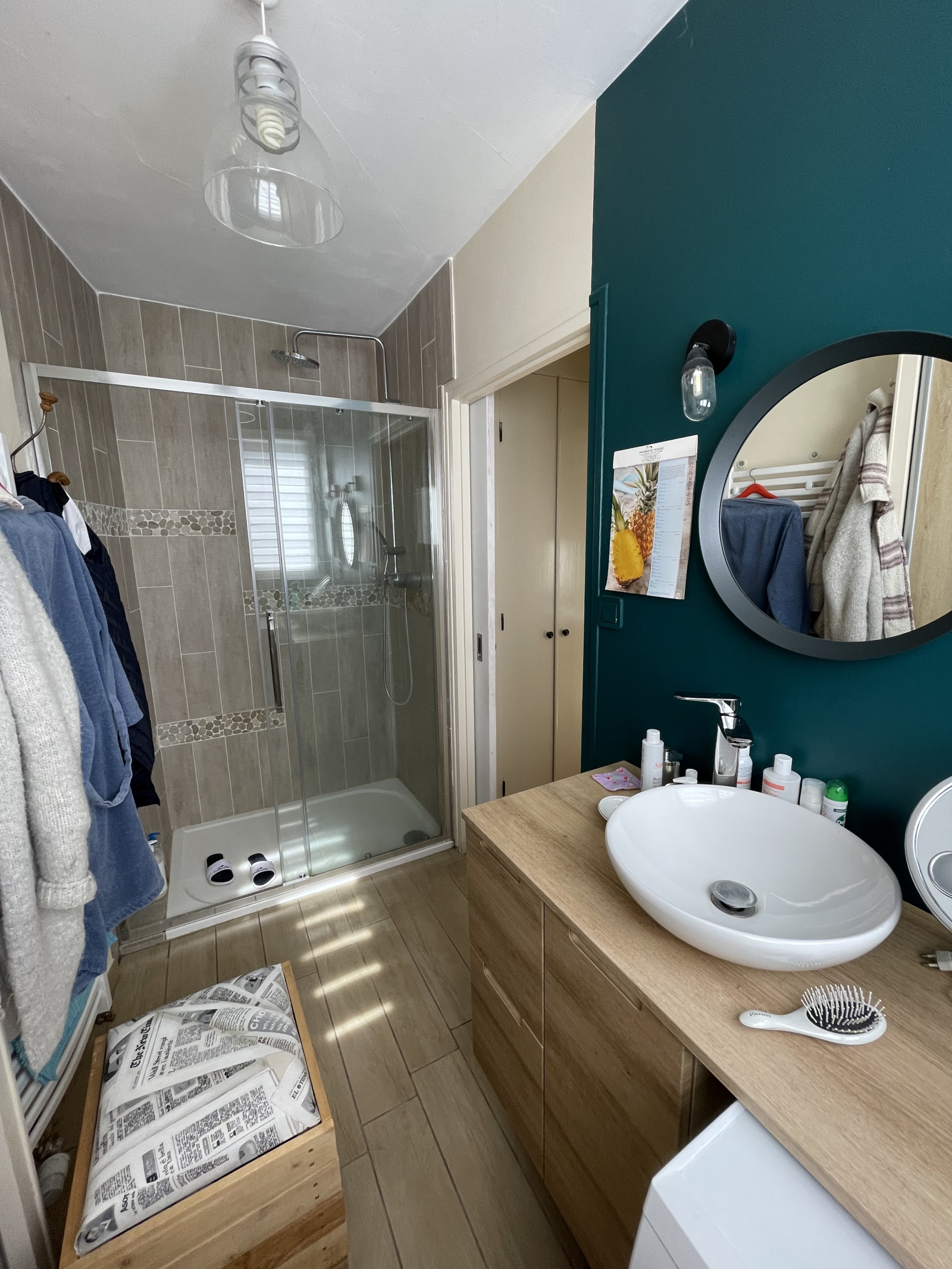 au 1er étage : 1 grande chambre palière, 1 chambre