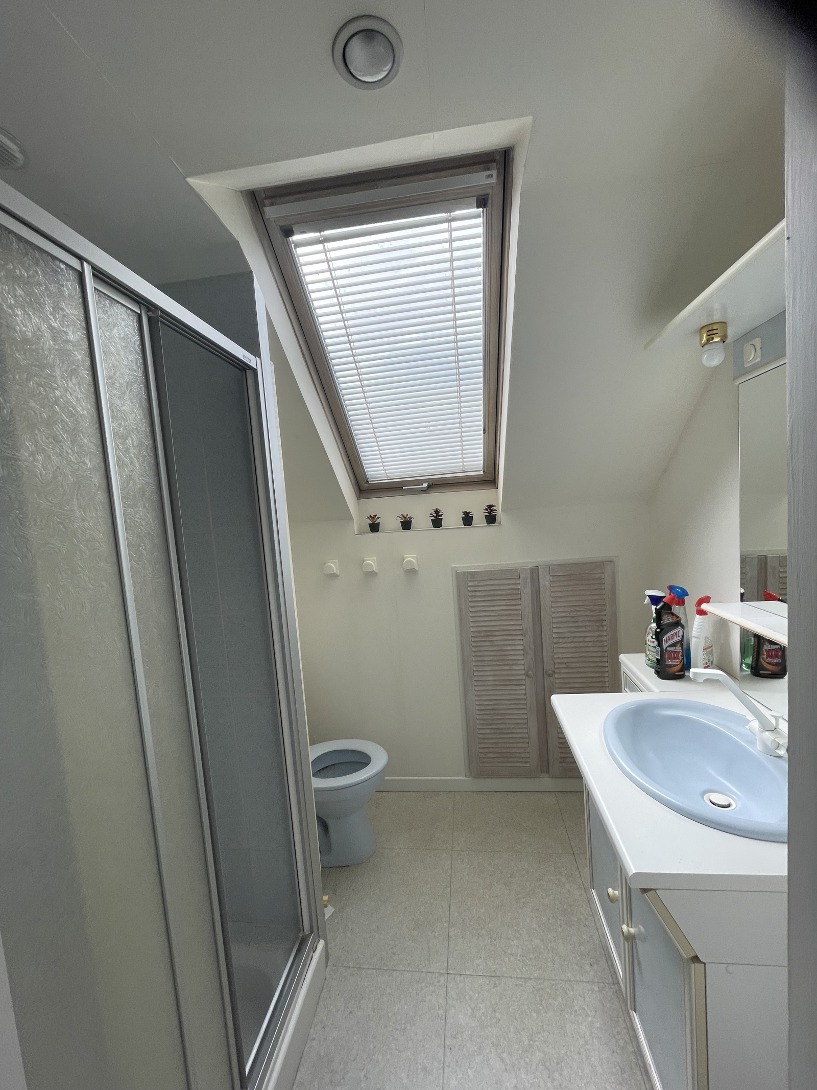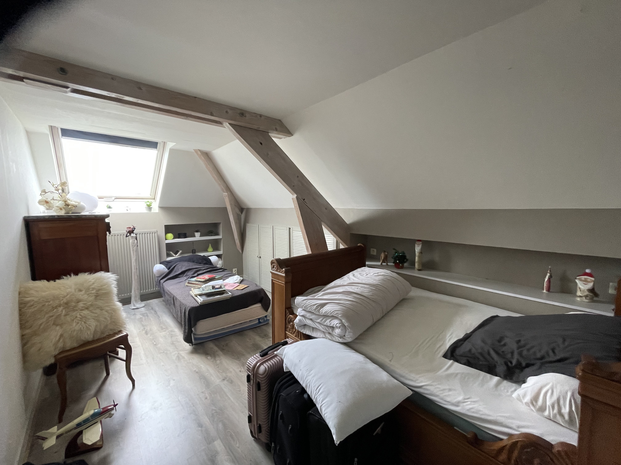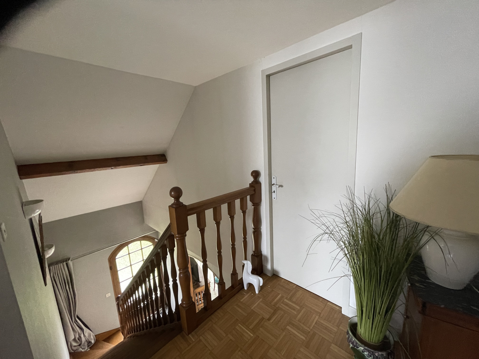 au 1er étage : palier desservant 2 chambres mansardées, salle d'eau et 1 grenier (aménageable en 1 chambre supplémentaire)