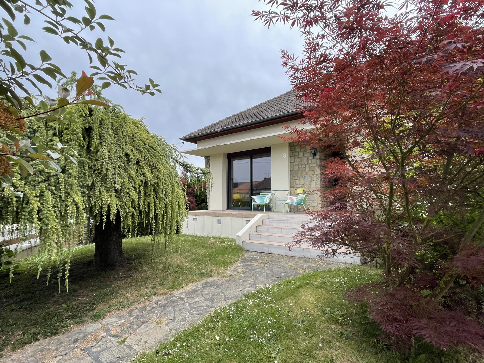 beau jardin clos et arboré - chauffage par système de pompe à chaleur installée en 2023